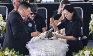 AGI - Alle 14 ora italiana è iniziata la veglia funebre per Pelé nello stadio del Santos. All'esterno del Vila Belmiro c'erano...